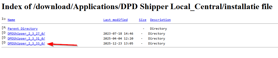 - Click on the latest available DPDShipper_2_3_X_X folder: