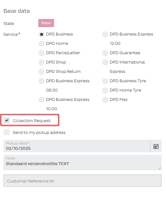 Mark all Collection Requests as ready for export – Forward your CR requests to DPD